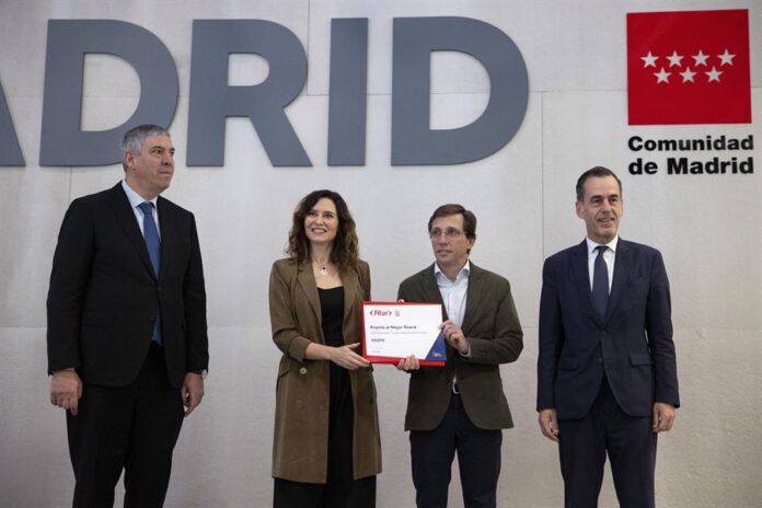 En el acto en estand de la Comunidad de Madrid en el recinto ferial de Ifema, en que ha estado presente el líder del PP, Alberto Núñez Feijóo, Ayuso y Almeida han relatado las bondades de la región, que han visitado 14 millones de turistas en 2023.