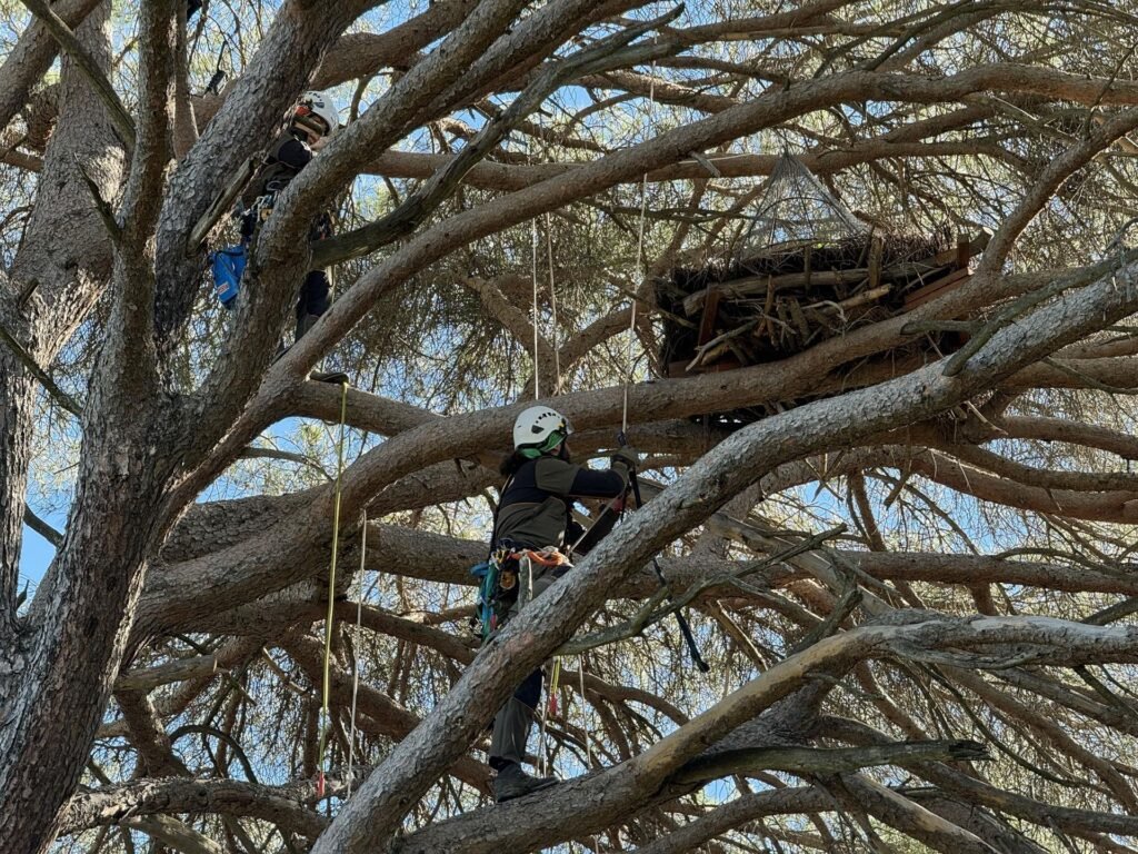 Entre febrero y marzo se procede a la retirada de los conos y a la rehabilitación de las plataformas de los nidos para la seguridad y el confort de estas aves. Para ello se utilizan ramas y planchas de musgo reconstruyéndolos si están en muy mal estado o ubicándolos en otro lugar si el sitio en el que se encuentran no se considera adecuado.