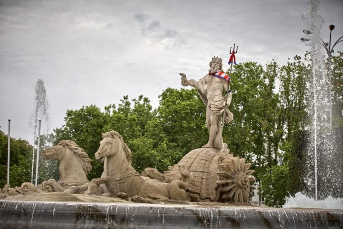 El Ayuntamiento de Madrid ha realizado un diagnóstico del estado de conservación de la Fuente de Neptuno, en el céntrico Paseo del Prado de la capital, para valorar una posible intervención para mejorar su aspecto.
