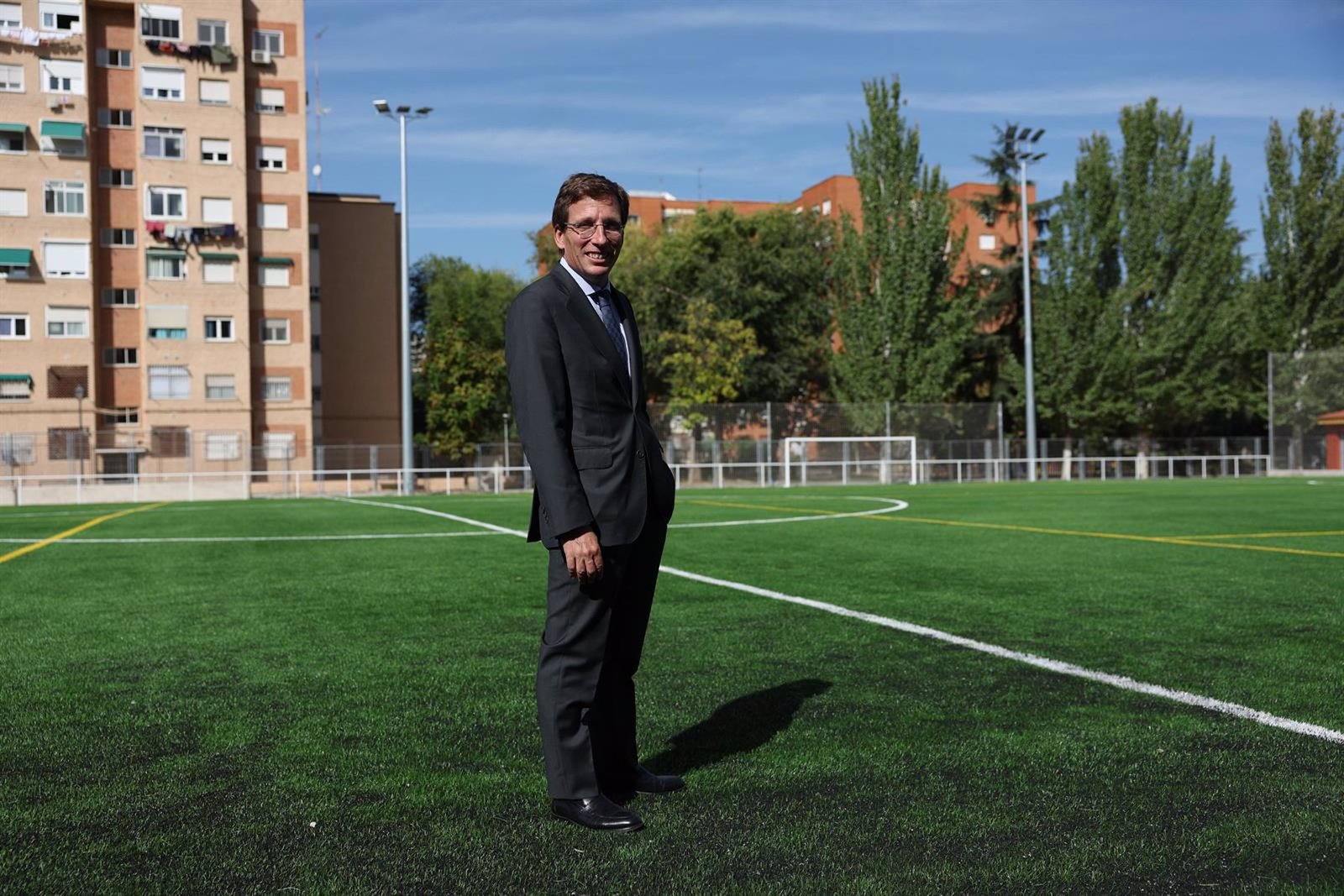 03/10/2023 El alcalde de Madrid, José Luis Martínez-Almeida, posa durante una visita al nuevo campo de fútbol 'Soledad Cazorla', en el Campo de Fútbol Sociedad Cazorla, a 3 de octubre de 2023, en Madrid (España). Durante el encuentro, el alcalde de Madrid también ha visitado una parcela recientemente rehabilitada por el Ayuntamiento en ese distrito. POLITICA Isabel Infantes - Europa Press