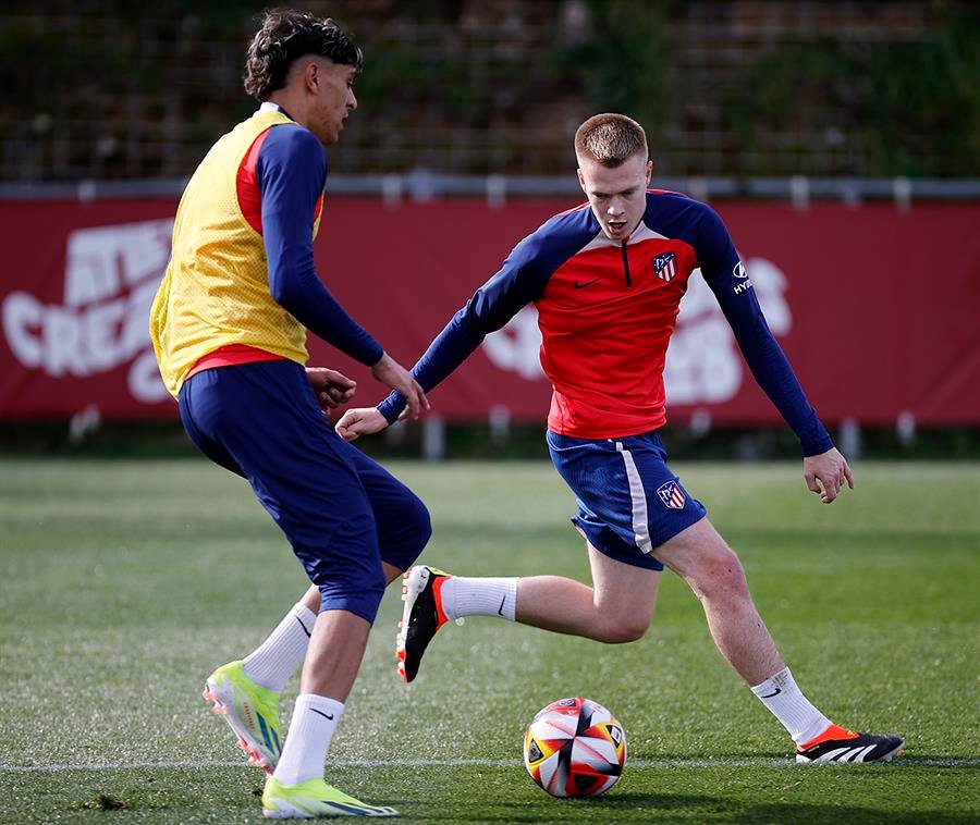 José María Giménez, defensa del Atlético de Madrid y baja los dos últimos partidos contra el Rayo y el Real Madrid por una lesión muscular, ya se ejercita sobre el césped, al margen del grupo, y avanza en su proceso de recuperación de la dolencia sufrida hace una semana ante el Valencia.