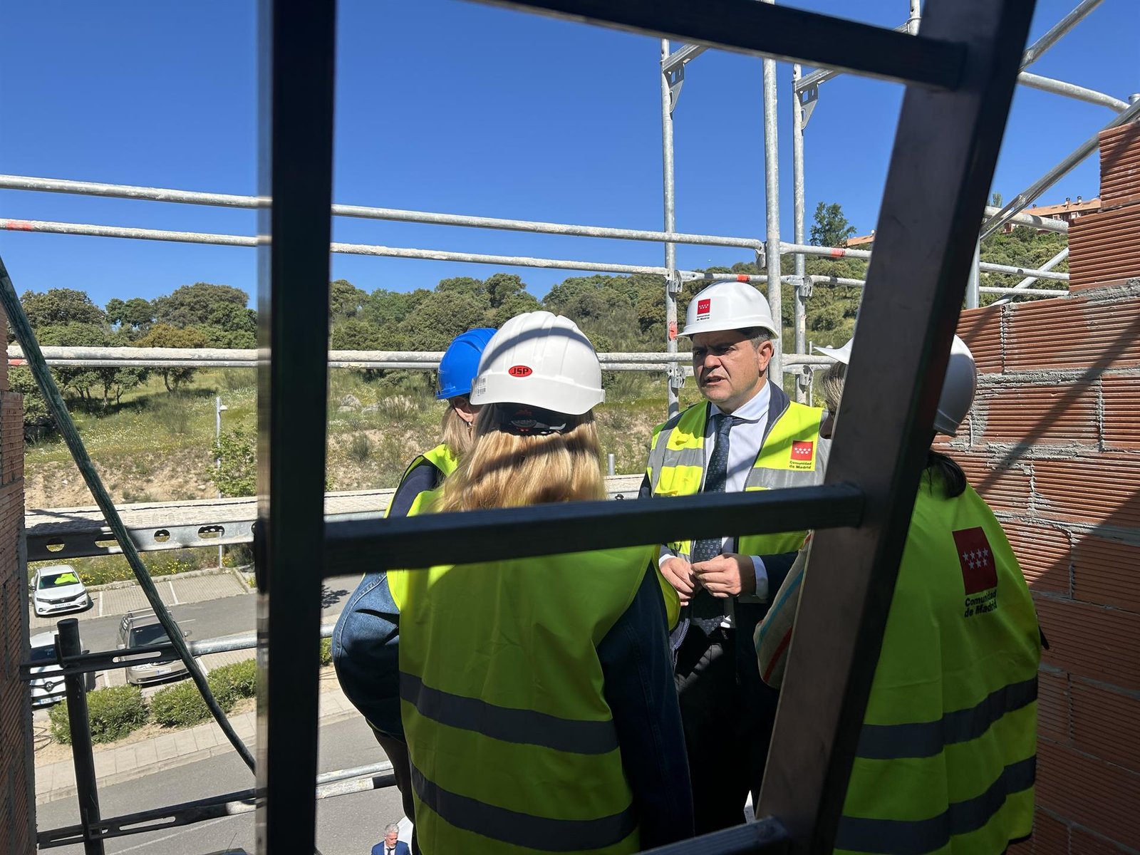 El consejero de Vivienda, Transportes e Infraestructuras, Jorge Rodrigo, ha visitado este martes la parcela en la calle Arroyo de Viales de esta localidad para conocer las características de esta urbanización con 49 pisos de un dormitorio, 56 de dos y 65 de tres, zonas ajardinadas, piscina, plaza de garaje y trastero.