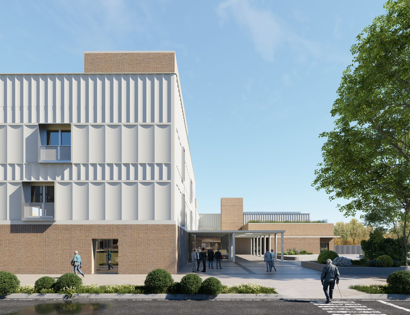 El acceso peatonal se realizará desde la confluencia de las calles de la Ilusión y de la Tolerancia por la mencionada plaza y a través de un espacio de transición porticado por el que se llegará a un hall de acceso que distribuirá a los usuarios hacia el centro cultural, la biblioteca o el auditorio. Cada uno de ellos tendrá su propio acceso, lo que permitirá un funcionamiento independiente, pudiendo tener horarios de apertura y cierre diferenciados.
