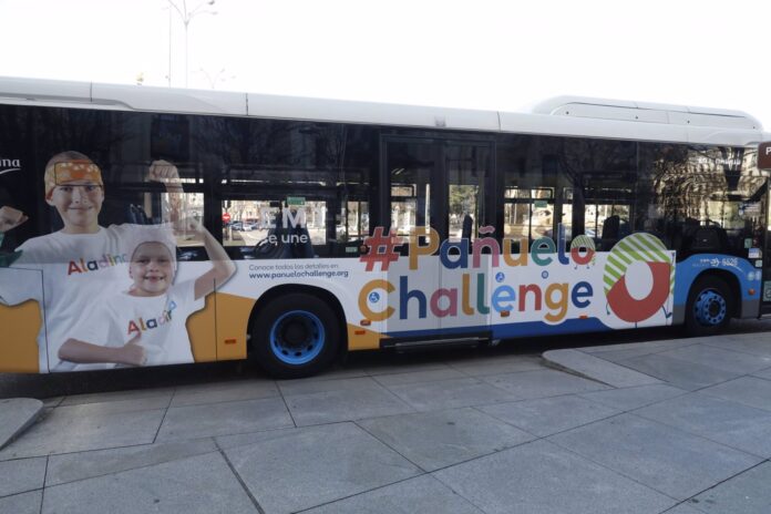 Los autobuses de la Línea C2 y las marquesinas de la Empresa Municipal de Transportes (EMT) visibilizarán la lucha contra el cáncer infantil, en el marco de la campaña ‘Únete al #PañueloChallengeAladina’ que lanza anualmente la Fundación Aladina.