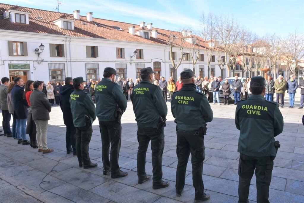 Momentos de emoción y de dolor los que se han vivido a las 12:00 horas en la Plaza de la Constitución durante el minuto de silencio en memoria de los dos agentes de la Guardia Civil asesinados en Barbate en acto de servicio contra el narcotráfico.