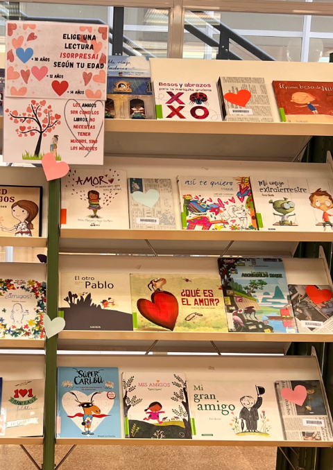 Hasta final de mes se va a mantener esta iniciativa para jóvenes lectores de +10 años, +12 años y +14 años. Para ello, en la Sala infantil-juvenil se ha preparado un expositor con una selección de libros infantiles para celebrar el amor y la amistad.