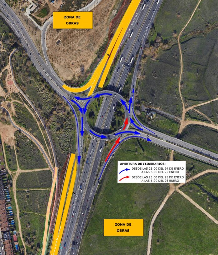 La reapertura de la glorieta se llevará a cabo en dos fases. A partir de las 6:00 h del jueves 25 de enero se permitirá el acceso a la glorieta desde la M-40 Sur únicamente para dirigirse a la M-201 dirección Coslada y desde la M-201 para acceder a la M-40 en ambos sentidos. Un día después, el viernes 26 de enero, a partir de las 6:00 h, se permitirán los mismos movimientos que el día anterior y se añadirá la posibilidad de acceder a la glorieta desde la M-40 Sur para dirigirse a la avenida de Arcentales.