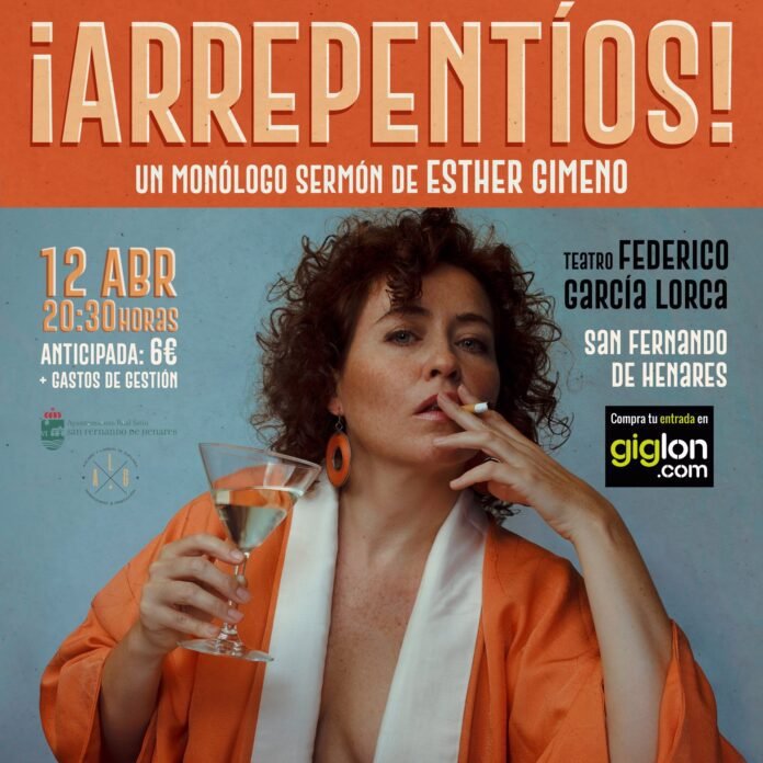 ‘Arrepentíos’ de Esther Gimeno es un monólogo de ‘stand up’ donde la monologuista sermonea al público en clave cómica. Además, Colectivo Desastre ha creado una banda sonora original al servicio de esta obra cómica. Esther Gimeno lleva quince años en los escenarios de comedia y ha estado en programas como ‘Nuevos Cómicos’ (Comedy Central), ‘Las que faltaban’ (Movistar), ‘Sábados felices’ (CaracolTV – Colombia) y ‘Comedyantes’ (AragonTV).