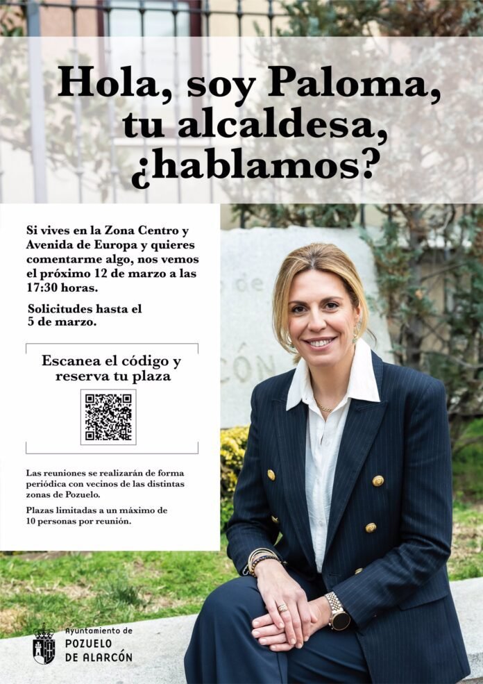 Los vecinos de Centro y Avenida de Europa de Pozuelo de Alarcón podrán trasladarle sus sugerencias e inquietudes a la alcaldesa, Paloma Tejero, en una reunión el 12 de marzo, a las 17.30 horas en el Ayuntamiento.