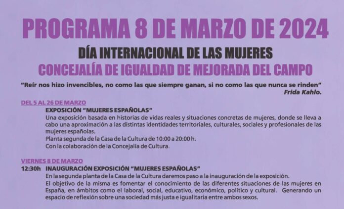 Los actos centrales se llevarán a cabo el sábado 9, con un acto institucional en el teatro municipal de la Casa de la Cultura durante el cual se dará lectura a un manifiesto a cargo del alcalde, Jorge Capa, y, a continuación, se realizará un homenaje a las mujeres mejoreñas.