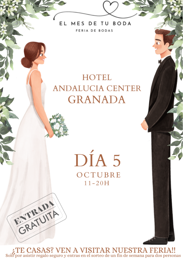 El Hotel Andalucía Center se vestirá de gala el próximo Domingo 5 de octubre para recibir a todas las parejas y profesionales del sector nupcial en «El Mes de Tu Boda», la Feria de Bodas que promete llenar de inspiración y magia el corazón de Granada.