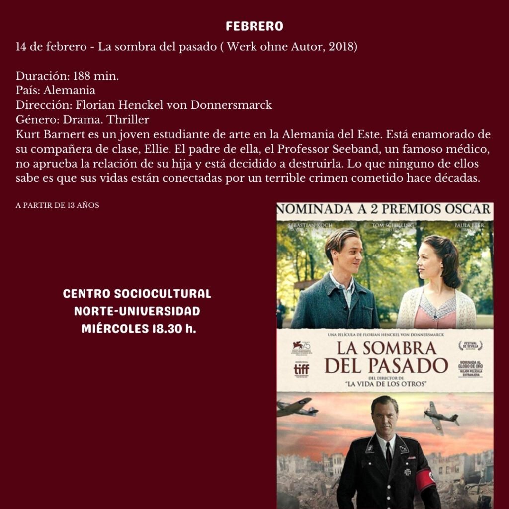 El miércoles 14 la película a proyectar será la alemana “La sombra del pasado”, aclamado thriller nominado a mejor película de habla no inglesa y mejor fotografía en los Premios Óscar de 2018.