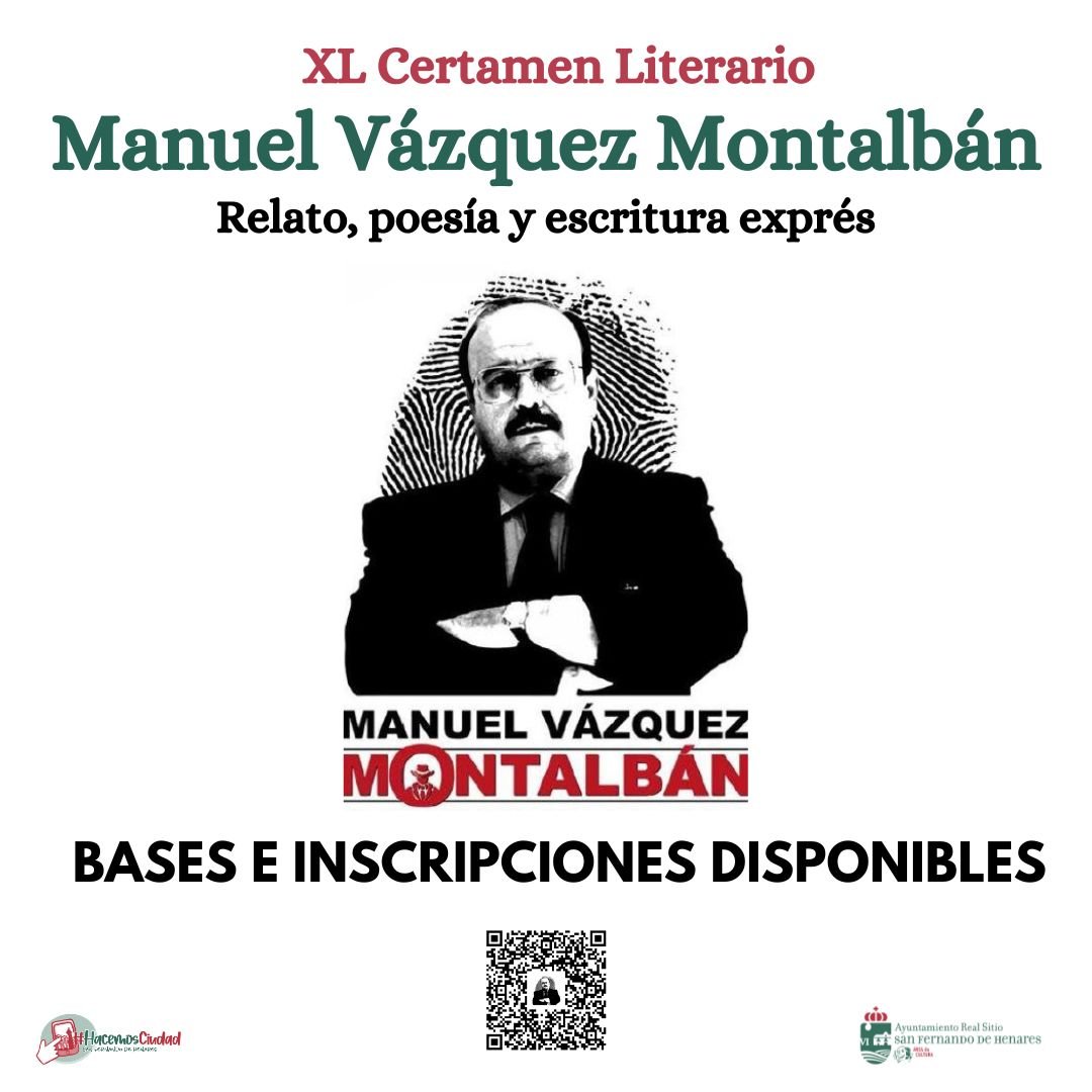 La concejalía de Cultura del Ayuntamiento de San Fernando de Henares ha convocado la XL Edición del Certamen Literario Manuel Vázquez Montalbán en las modalidades de relato, poesía y escritura exprés.