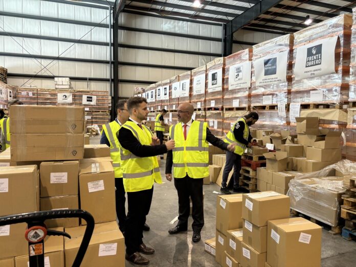 El delegado del Gobierno de Madrid, Francisco Martín, ha visitado esta mañana el centro logístico de la Delegación, una nave de casi 3.000 metros cuadrados ubicada en el polígono de La Garena, en Alcalá de Henares, desde donde se gestiona, almacena y distribuye todo el material electoral que se utilizará en la Comunidad de Madrid para las próximas elecciones de día 9 de junio.