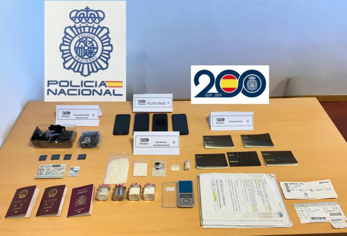 Se ha realizado una entrada y registro en Madrid y se han intervenido visados y pasaportes falsificados de otras nacionalidades, más de cuatrocientos gramos de sustancias estupefacientes de origen sintético (ketamina y MDMA), básculas de precisión y utensilios para su corte, peso y distribución, un tampón para falsificar sellos del Servicio de Inmigración de Japón, varios dispositivos electrónicos, cuatro teléfonos móviles y numerosa documentación relacionada con la investigación.