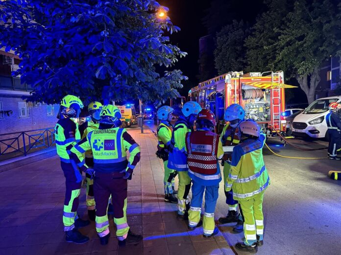 Siete dotaciones de Bomberos de la Comunidad de Madrid han controlado y extinguido el fuego, y posteriormente han revisado cada piso para cerciorarse de que la concentración de monóxido de carbono era nula.