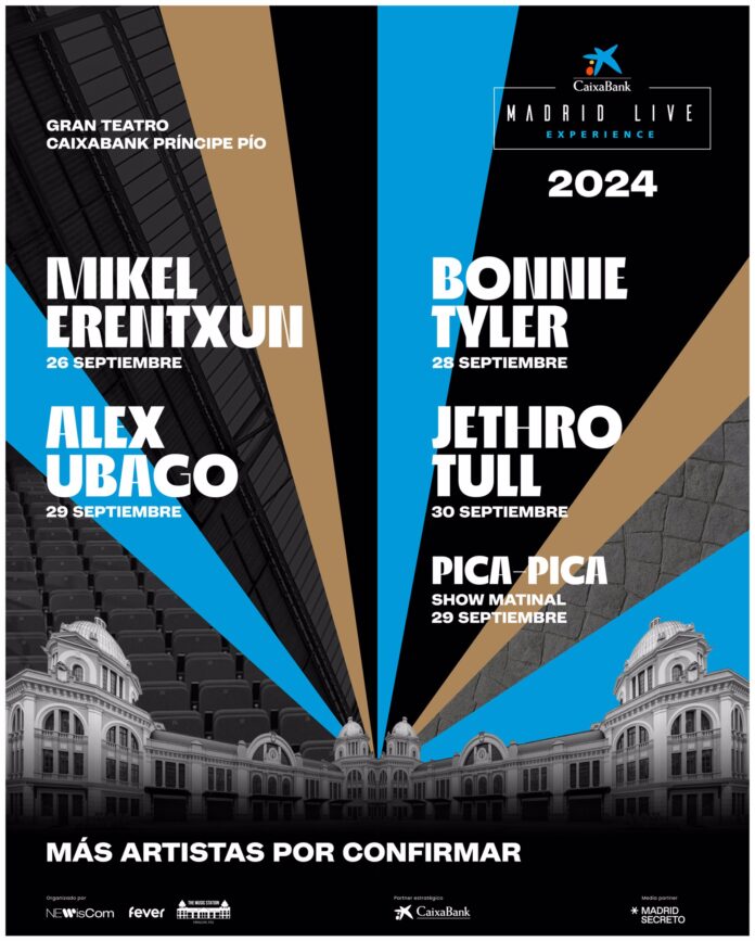 El CaixaBank Madrid Live Experience volverá a celebrarse un año más, del 26 de septiembre al 2 de octubre, con algunos artistas confirmados como Bonnie Tyler, Jethro Tull, Álex Ubago, Mikel Erentxun, Leo Rizzi, Siloé y Club del Río en el Teatro CaixaBank Príncipe Pío.