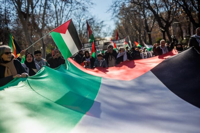 Agentes de la Policía Nacional han detenido a una mujer por proferir insultos antisemitas y agredir a otra por ser judía cuando participaba en una manifestación a favor de Palestina en la capital, han informado fuentes policiales.