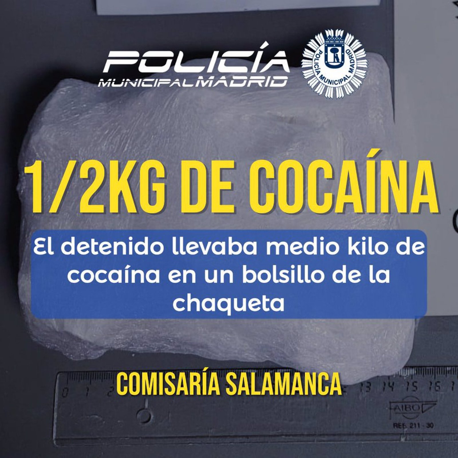 28/05/2024 Sucesos.- Detenido un hombre con más de medio kilo de cocaína escondido en una chaqueta.La Policía Municipal de Madrid ha detenido a un hombre con más de medio kilo de cocaína escondido en un falso bolsillo de su chaqueta, ha informado a Europa Press una portavoz del Cuerpo Local.ESPAÑA EUROPA MADRID SOCIEDAD POLICÍA MUNICIPAL DE MADRID