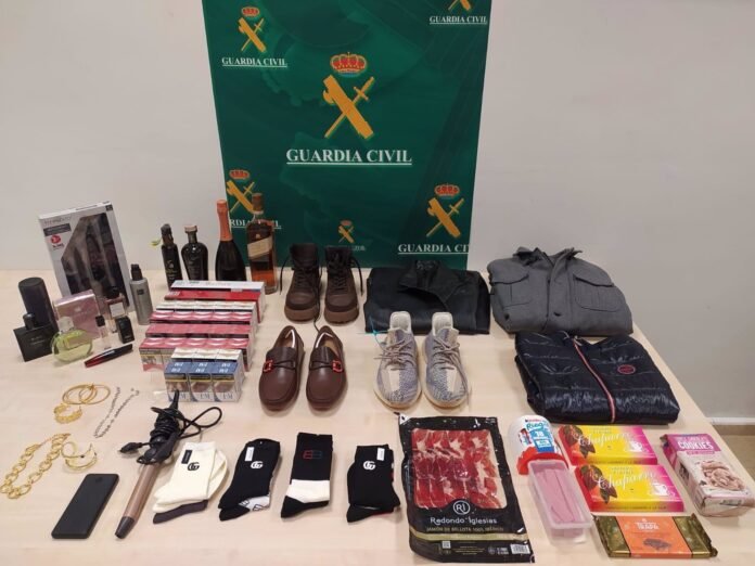 Los agentes de la Guardia Civil también se han incautado de una gran cantidad de productos perecederos como embutidos, jamón y quesos, además de latas de conservas y otros alimentos que han sido entregados en comedores sociales, al no lograr localizar a los propietarios.